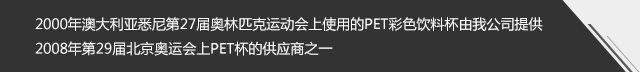 1994年公司从美国、瑞士引进当时最先进的生产PET产品流水线,正式开始专业生产PET系列产品。通过20多年的不断探索和发展,市场遍布五大洲六十多个国家和地区,与世界很多知名企业和品牌建立了友好合作,,如星巴克、DQ、迪士尼、农夫山泉、蒙牛、百威啤酒等。公司现有若干条流水线,几十台各类生产机组,年生产能力可达12亿套以上,形成了完整的集设计、制造、生产、销售与服务为一体的专业运行体系。